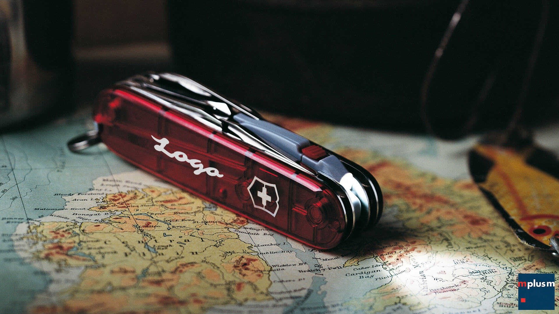 Bei der Victorinox Gravur als klassischer Technik der Werbeanbringung werden die Zeichen mit einem harten Fräskopf (Frässtichel) in das Material eingeschnitten. Auf den Kunststoffoberflächen der Victorinox Taschenmesserschalen aus Cellidor® werden die Vertiefungen dann mit Kontrastfarbe aufgefüllt. Bei Swiss Tools sind Logos und Buchstaben mit Diamantgravur möglich. Diese besonders dauerhafte Veredelung eignet sich vor allem bei Taschenmessern und Tools in kleinen Serien und bei Individualisierungen mit Einzelnamen.