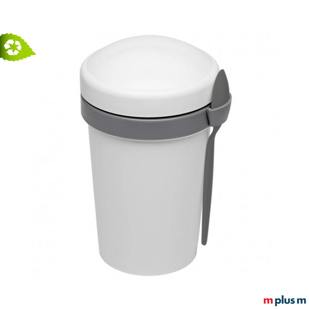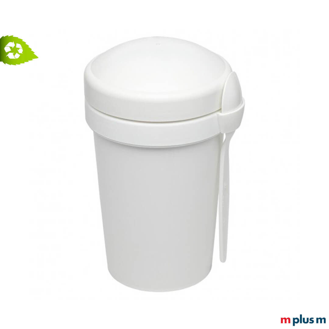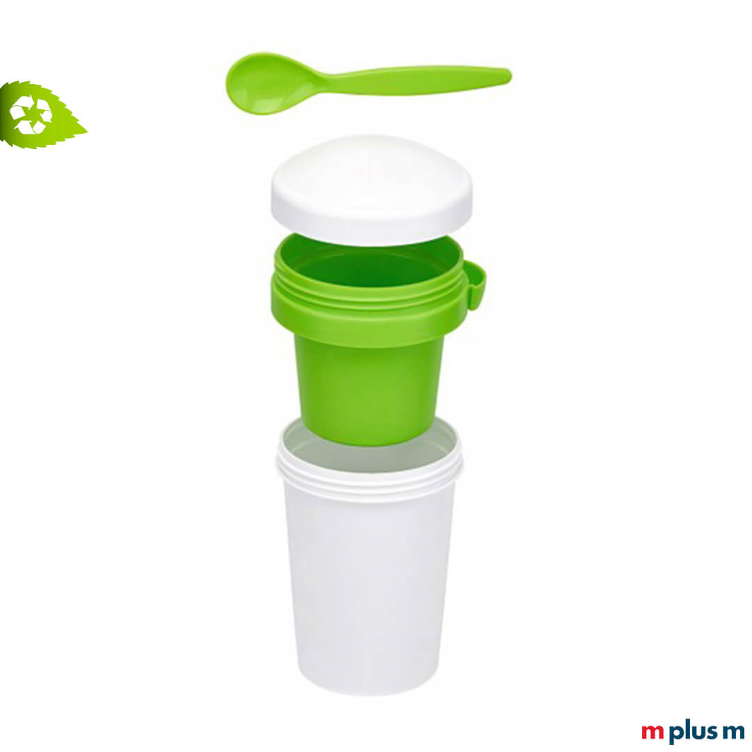 Schöner und stabiler mehrteiliger Bio To Go Kunststoffbecher z.B. für Müsli oder Joghurt. Der nachhaltig in Deutschland produzierte Bio-Müslibecher ist frei von Schadstoffen und 100% recycelbar. Er stellt somit eine nachhaltige Alternative zu allen Einwegplastik Bechern dar. Ab einer Menge von 500 Stück können Sie den nachhaltigen Bio Müsli To Go Becher bedrucken lassen. Dadurch wird er zu Ihrem idealen nachhaltigen Werbeartikel.