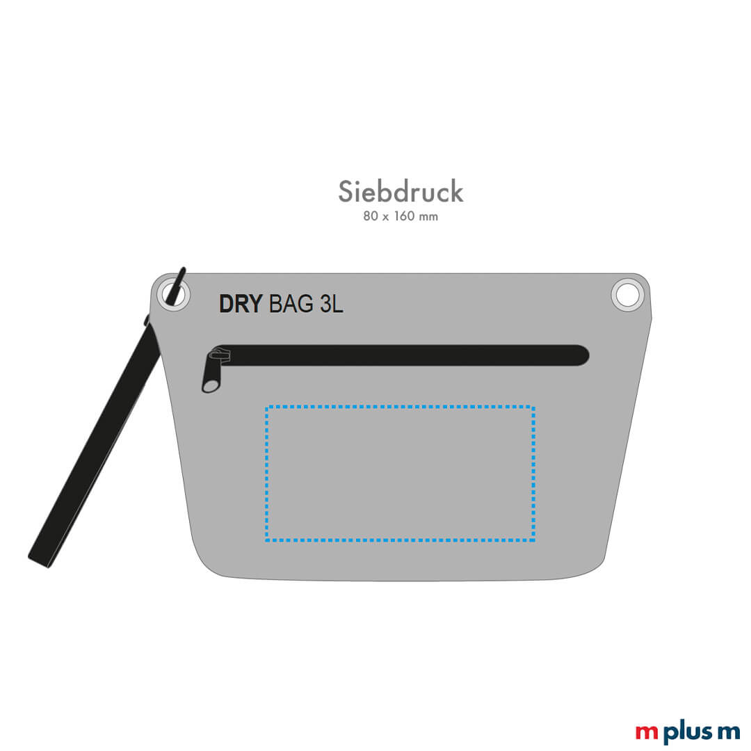 Ab einer Menge von 50 Stück können sie die Drybag Medium Reissverschlusstasche mit Logo bedrucken lassen. So wird die wasserfeste Tasche zu einem schönen Werbeartikel oder Werbegeschenk.