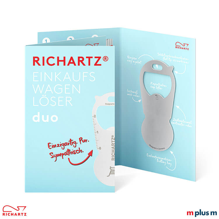 Schöner Einkaufswagenlöser 'duo' als Giveaway: Der Einkaufswagenlöser 'duo' von Richartz mit 6 verschiedenen Funktionen als praktischer Begleiter und mit Logo Gravur ein dauerhafter Werbeartikel.