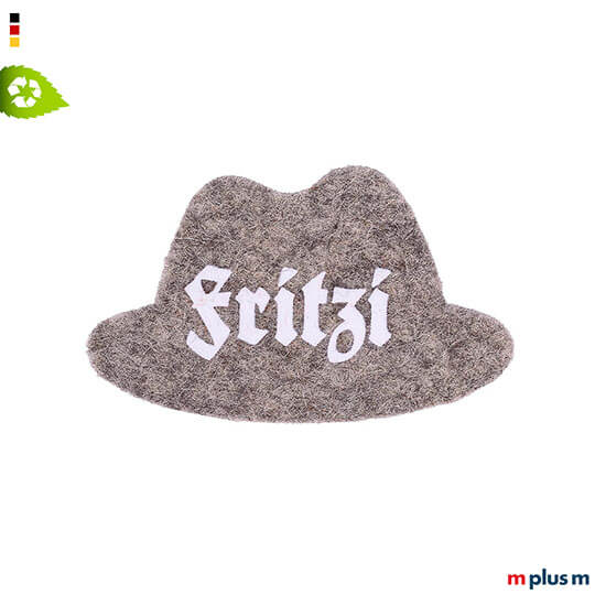 Der Hut Anstecker aus hochwertigem Recycling Filz wird in Deutschland hergestellt und kann als Oktoberfest Giveaway oder Werbeartikel schön mit Ihrem Logo oder Motiv personalisiert werden