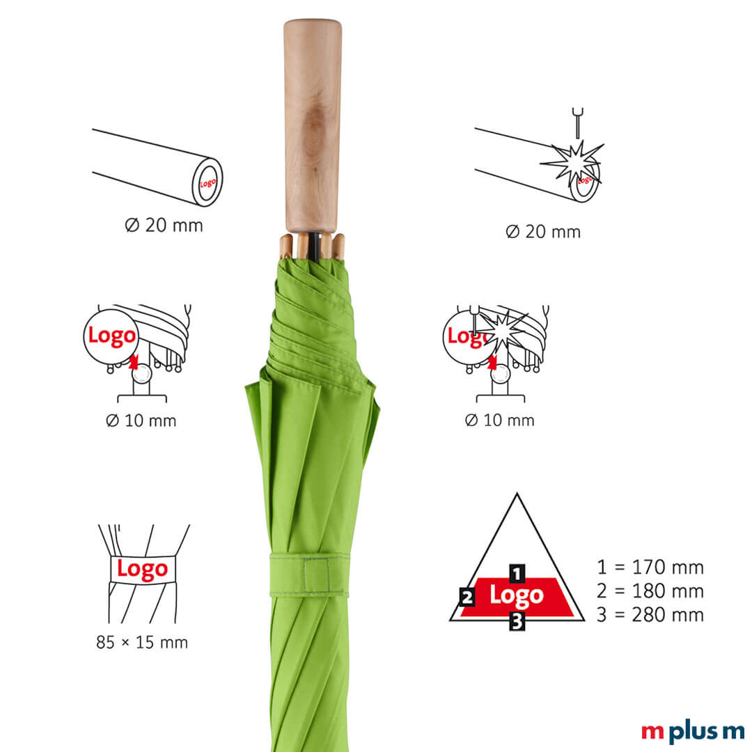 Ab einer Bestellmenge von 48 Stück können Sie den 'Lillehamer' Regenschirm bedrucken lassen. Durch seine großen Werbeflächen eignet sich der Schirm besonders gut als nachhaltiger Werbeartikel.
