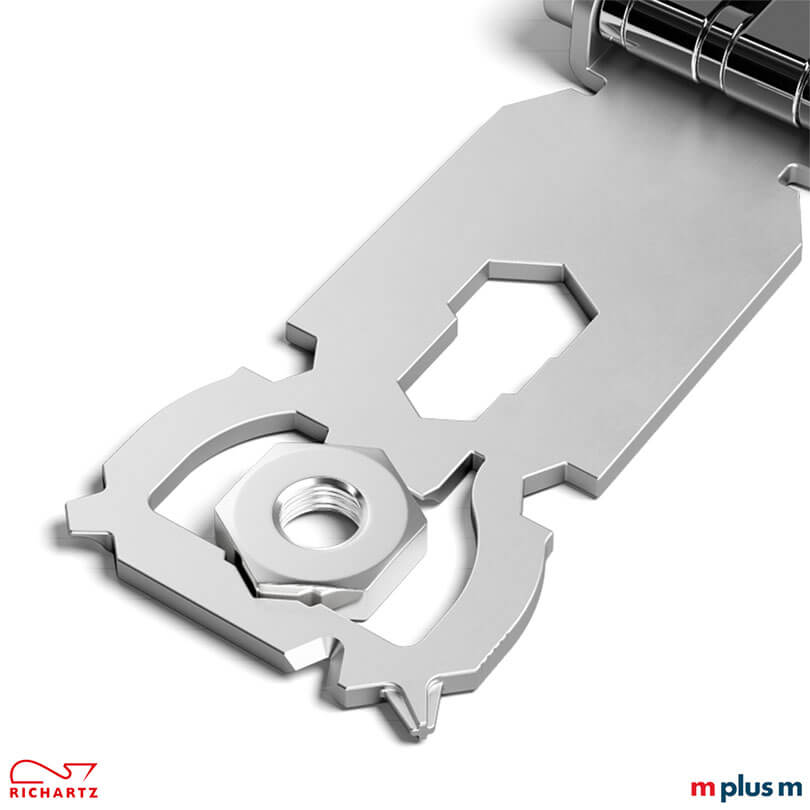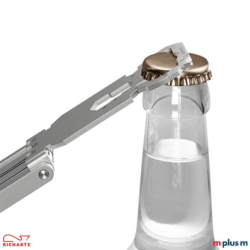 | Multifunktionen | 3 Fahrradspeichenschlüssel, 5 Inbusschlüssel, Kabelabisolierer, Kapselheber, Kreuzschlitzschraubendreher, Nagelzieher, Schlitzschraubendreher, 7 Sechskantschlüssel, Torxschlüssel |