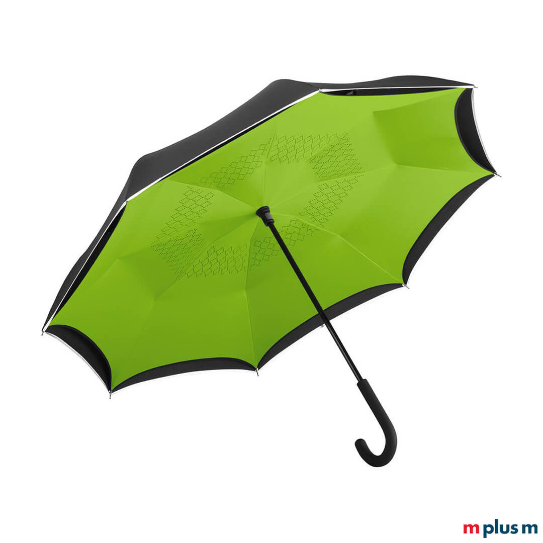 Regenschirm bedrucken: der Regenschirm 'Tulip' hat einen umgekehrten Öffnungs- und Schließungsmechanismus. Das Automatiksystem ermöglicht das schnelle Öfnnen des Regenschirms. Mit Logodruck ab 48 Stück als idealer Werbeartikel erhältlich.