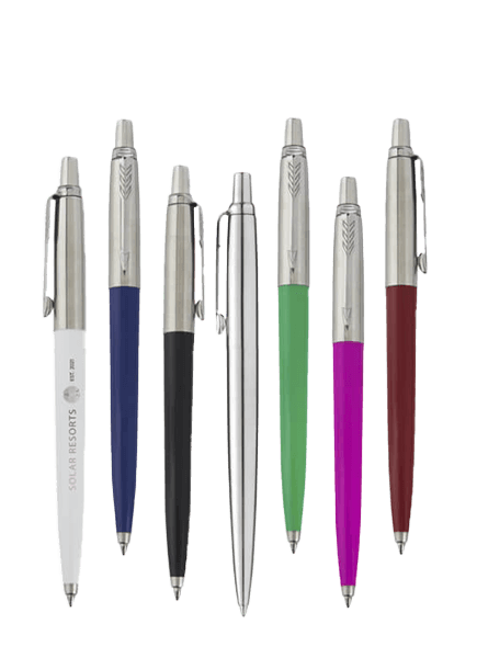Schon ab kleinen Stückzahlen können Parker Kugelschreiber mit Ihrem Logo bedruckt oder graviert werden ideal für kleine Teams oder exklusive Anlässe.