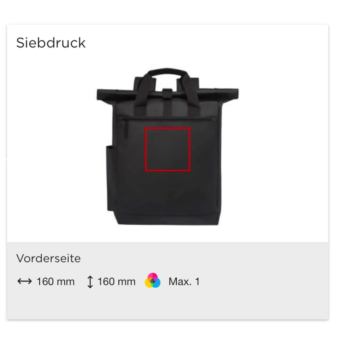 Ab einer Bestellmenge von 25 Stück können Sie den AquaPack CLASSIC Laptop Rucksack bedrucken lassen. Dadurch wird der Rucksack zu Ihrem idealen Werbeartikel oder zu einem schönen Werbegeschenk für Kunden und Mitarbeiter. Folgende Verfahren zur Personalisierung gibt es: