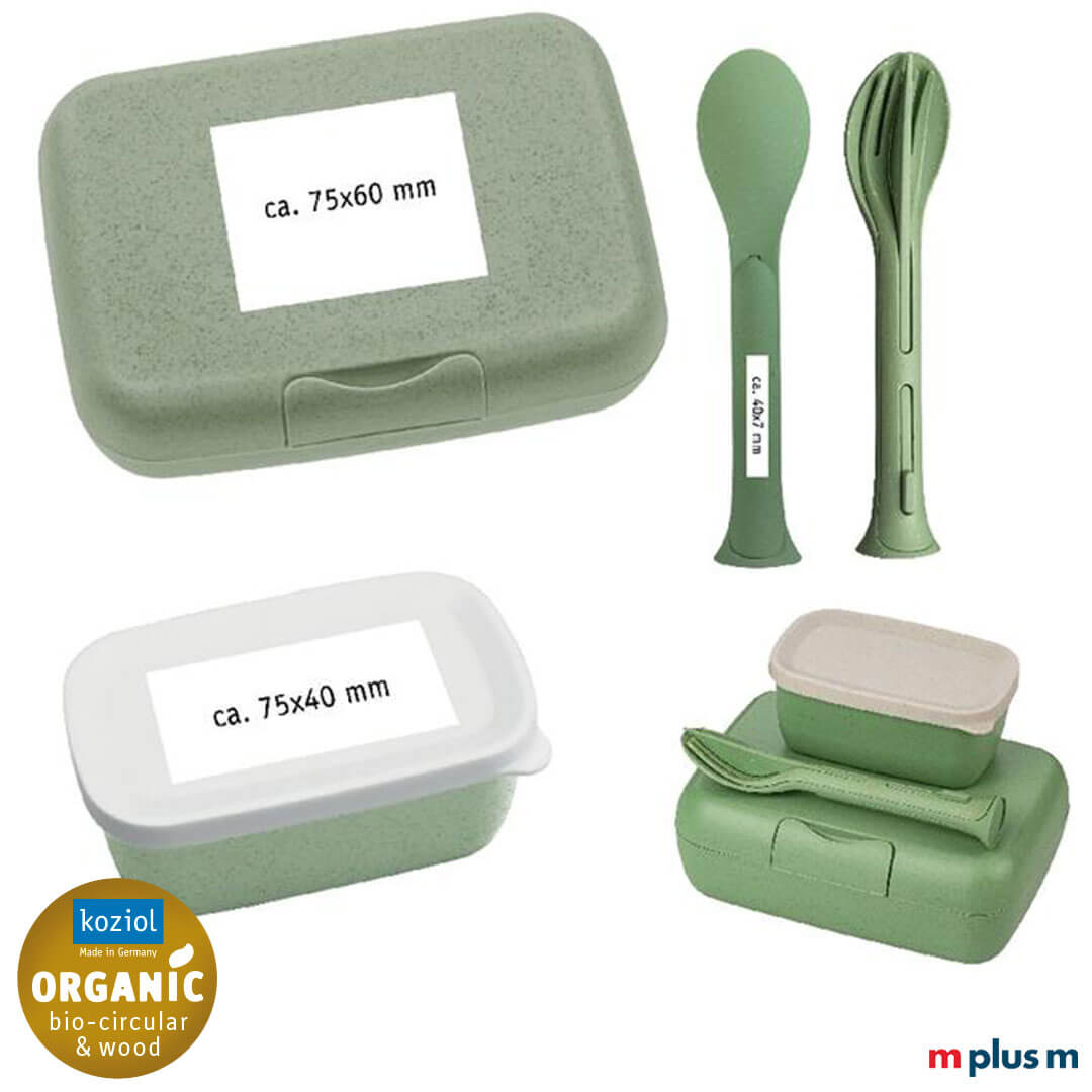 Ab einer Menge von 100 Stück kann das Lunchbox-Set 'Candy Ready Bio Circular' als nachhaltiger Werbeartikel von Koziol mit Logo bedruckt werden.