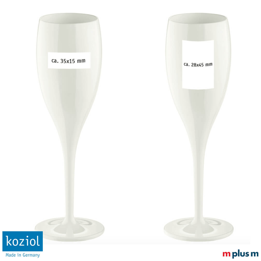 Die unzerbrechlichen Sektgläser von Koziol können ab einer Menge von 100 Stück individuell mit Logo bedruckt werden. Hiermit entsteht Ihr eigenes Werbemittel. Dieser individuelle Werbeartikel eignet sich perfekt für Events.