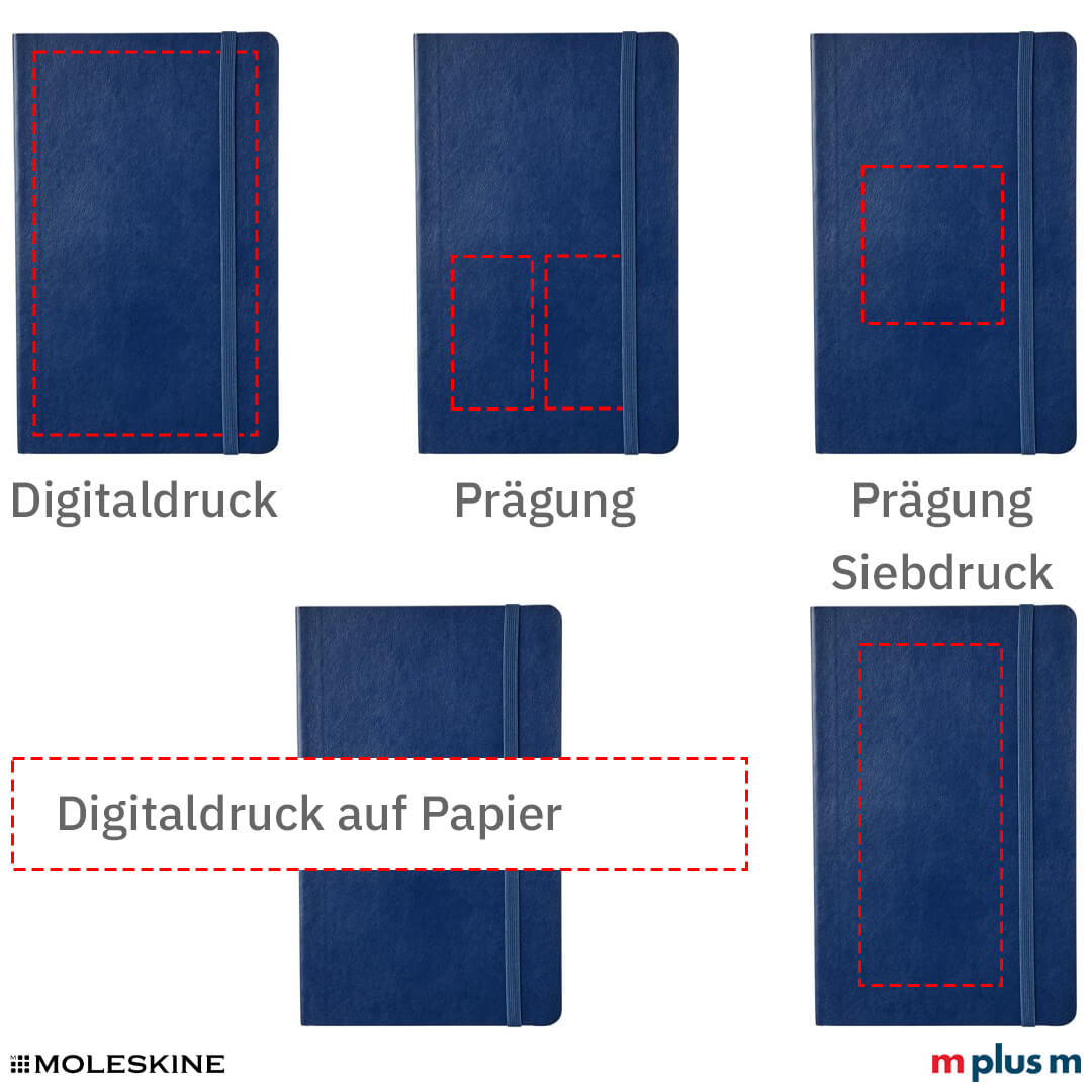 Schon ab einer Bestellmenge von 25 Stück können Sie das Moleskine Notizbuch bedrucken lassen. Dadurch wird es zu Ihrem perfekten Werbeartikel oder zu einem schönen Werbegeschenk für Kunden und Mitarbeiter.