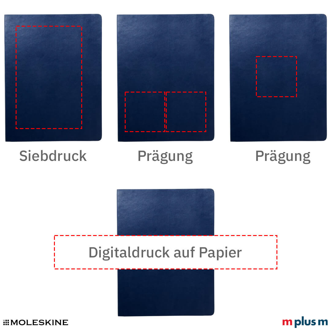 Moleskine Notizbuch bedrucken: klassisches Moleskine Notizbuch mit Softcover in Größe XL als Werbeartikel mit Logo bedrucken.