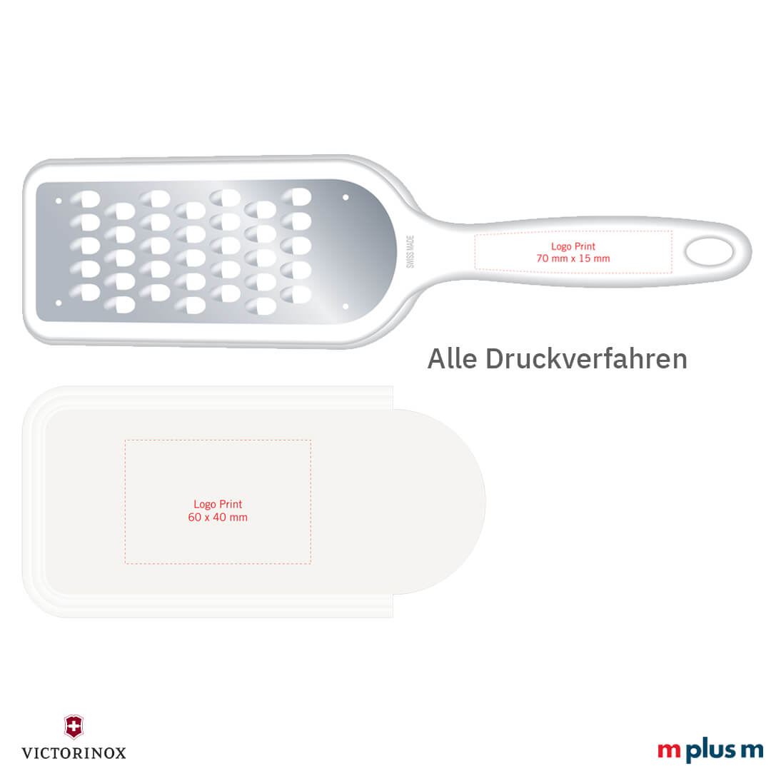 Ab einer Menge von 500 Stück können Sie die Victorinox Küchenreibe mit Logo bedrucken. Dadurch wird sie zu Ihrem perfekten Werbeartikel oder Werbegeschenk. Einsetzbar als Werbegeschenk für Kunden, Mitarbeiterausstattung, Onboarding Artikel oder Weihnachtsgeschenk für Mitarbeiter.