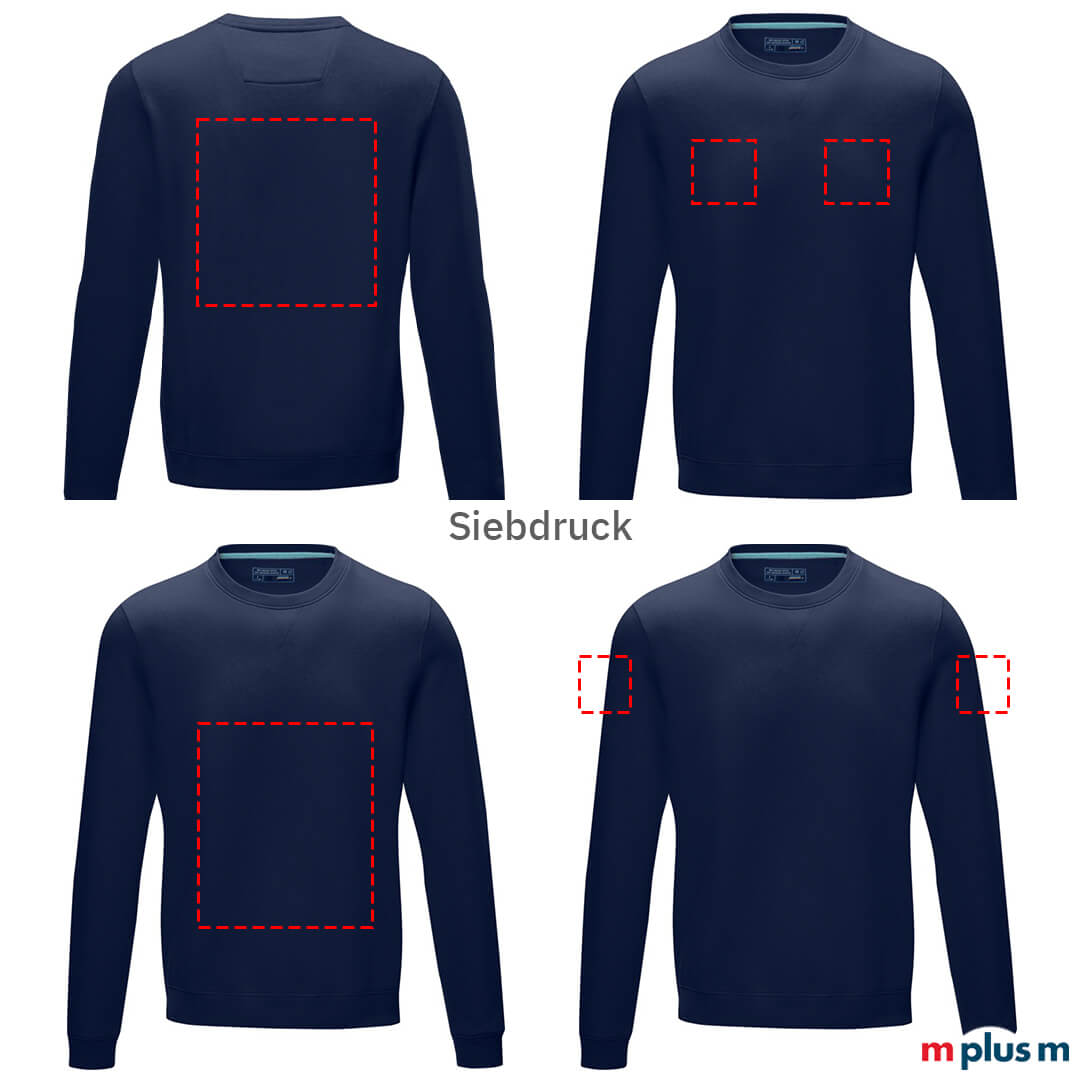 Sweatshirt Herren: Das Herren Sweatshirt 'Jasper' aus zertifizierter Biobaumwolle und Recycling Polyester ist ein nachhaltiges Kleidungsstück. Dieser Pullover ist perfekt für die kälteren Herbst- und Wintertage. Ab 10 Stück können Sie den Herren Pullover bedrucken lassen. Bedruckte Klamotten bzw. bedruckte Pullover sind ideal geeignet für das Employer Branding oder als Werbeartikel oder Werbegeschenk für Kunden und Mitarbeiter.