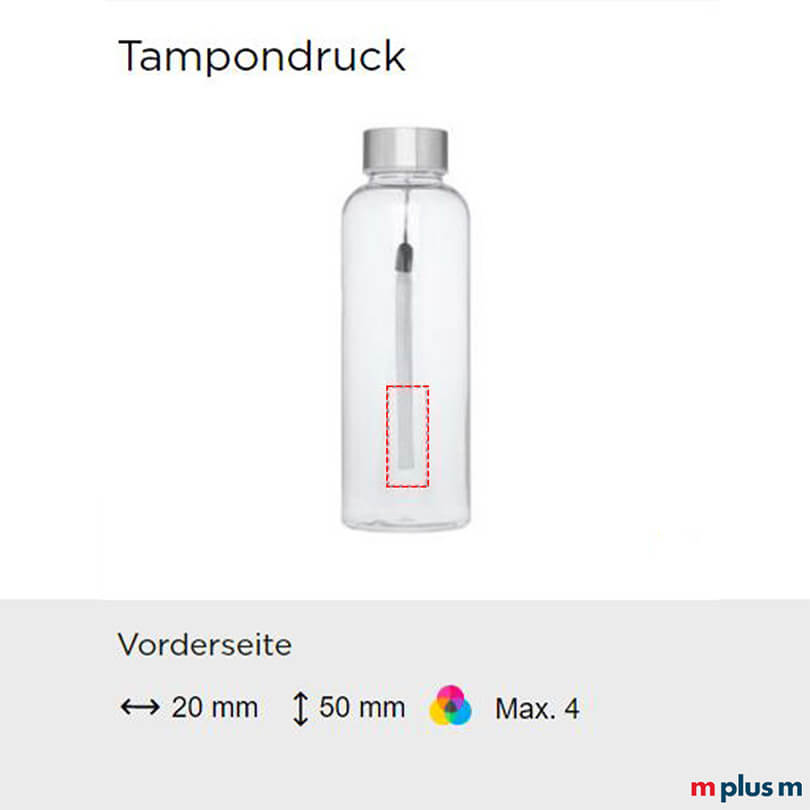 Ab einer Bestellmenge von 100 Stück können Sie die Sportflasche mit Ihrem Logo oder Motiv bedrucken lassen. Durch das Bedrucken der Trinkflasche lässt sich einfach ein individueller, nachhaltiger Werbeartikel produzieren.