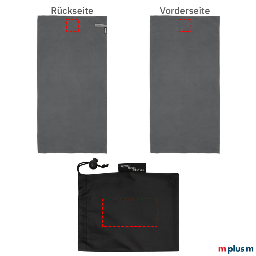 Ab einer Menge von 50 Stück können Sie das 'Mark L' Mikrofaser Recycling Handtuch bedrucken lassen. Bedruckte Handtücher sind praktische Werbemittel für Events im Sommer. Sie eignen sich auch gut als kleines Give Away oder als Werbegeschenk für Kunden und Mitarbeiter.