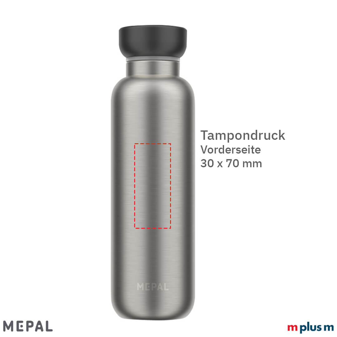 Ab einer Bestellmenge von 10 Stück können Sie den Mepal Ellipse 500ml Thermosflasche mit Ihrem Logo bedrucken lassen. Ideal als Mitarbeitergeschenk, als persönliches Arbeitsmittel oder Kundenpräsent.