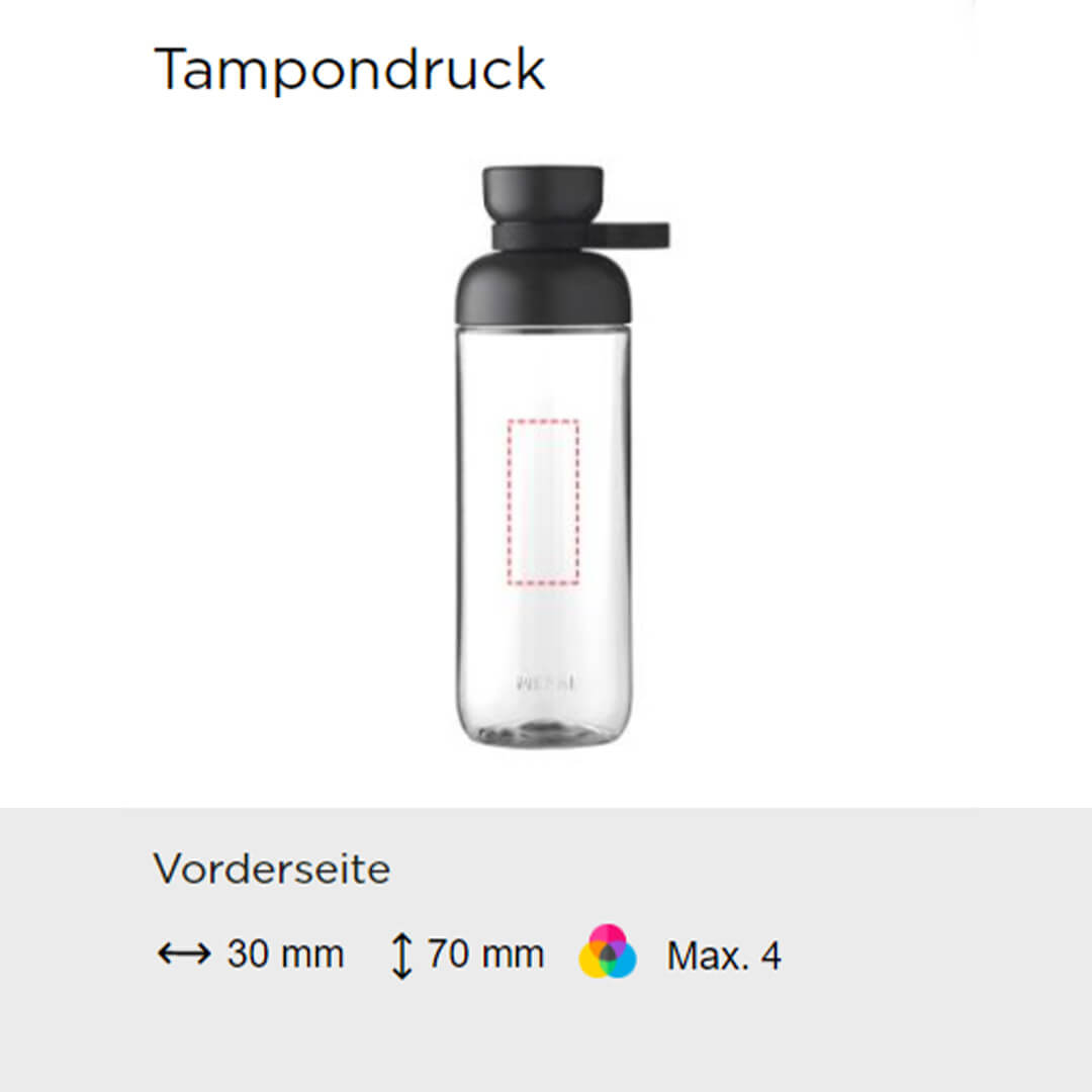 Ab einer Bestellmenge von 25 Stück können Sie die Wasserflasche 'Vita' von Mepal mit Logo bedrucken lassen. Dadurch wird sie zu Ihrem idealen Werbeartikel oder zu einem praktischen Werbegeschenk für Kunden und Mitarbeiter.