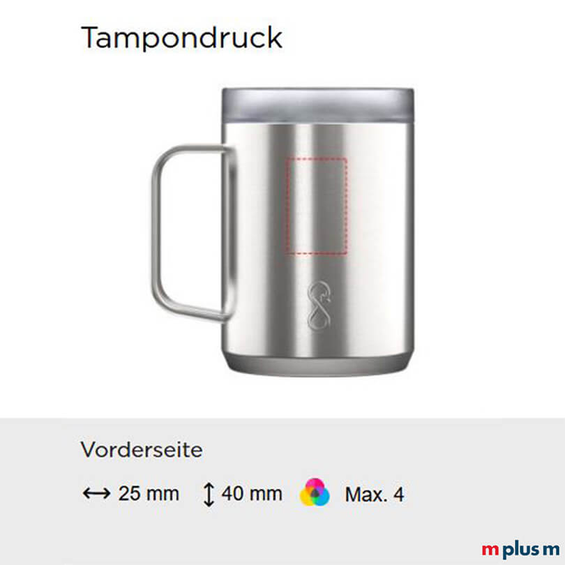 | Tampondruck | Vorderseite | max. 4-farbig | 25 x 40 mm |