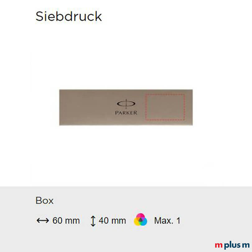 Ab einer Bestellmenge von 25 Stück können Sie den Parker Jotter Edelstahl Kugelschreiber bedrucken lassen. Folgende Druckmöglichkeiten bestehen: