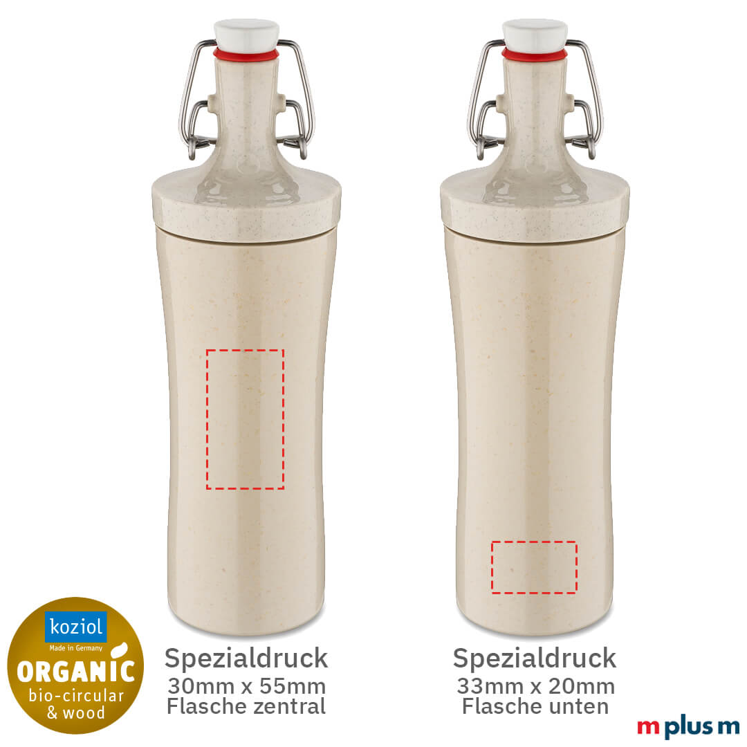 Die nachhaltige Trinkflasche 'Plopp To Go Bio Circular' mit Bügelverschluss von Koziol. Made in Germany Wasserflasche, frei von Schadstoffen, aus Recycling Bio Kunststoff und auslaufsicher. Mit Logo Druck ein idealer nachhaltiger Werbeartikel.