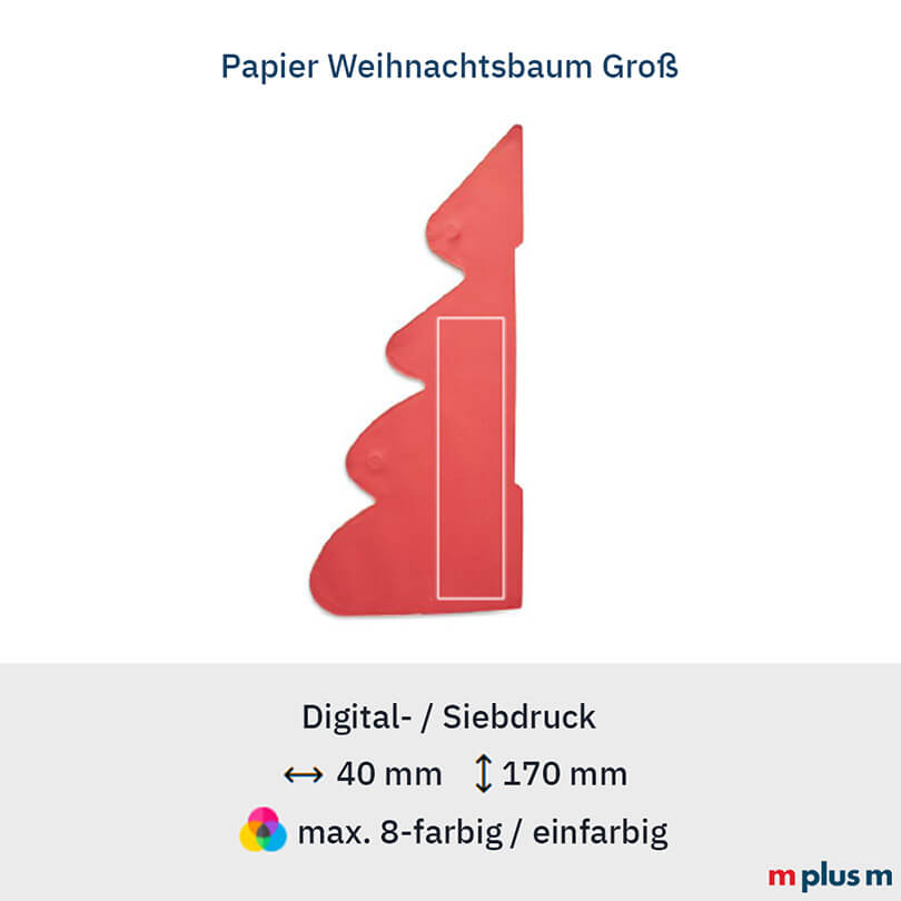 Ab einer Menge von 100 Stück können Sie diesen Papier Weihnachtsbaum Groß mit Logo bedrucken lassen. Durch die Individualisierung mit Ihrem Logo wird er zu einem schönen Werbeartikel oder Werbegeschenk.