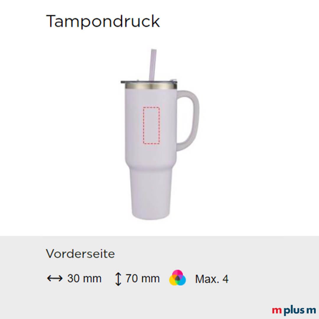 | Tampondruck | Vorderseite | max. 4-farbig | 30 x 70 mm |