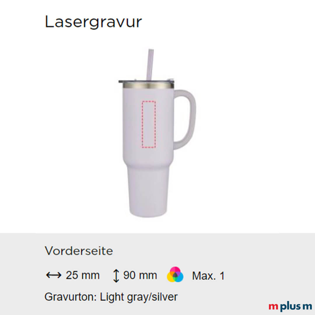 ![]() | Eigenschaften | Auslaufsicher, Recycling Materialien, RCS-zertifiziert, 100% schadstoff- und BPA-frei, lebensmittelecht, hält Getränke heiß oder kalt, mit Strohhalm. Handwäsche des pulverbeschichteten Bechers empfohlen. |