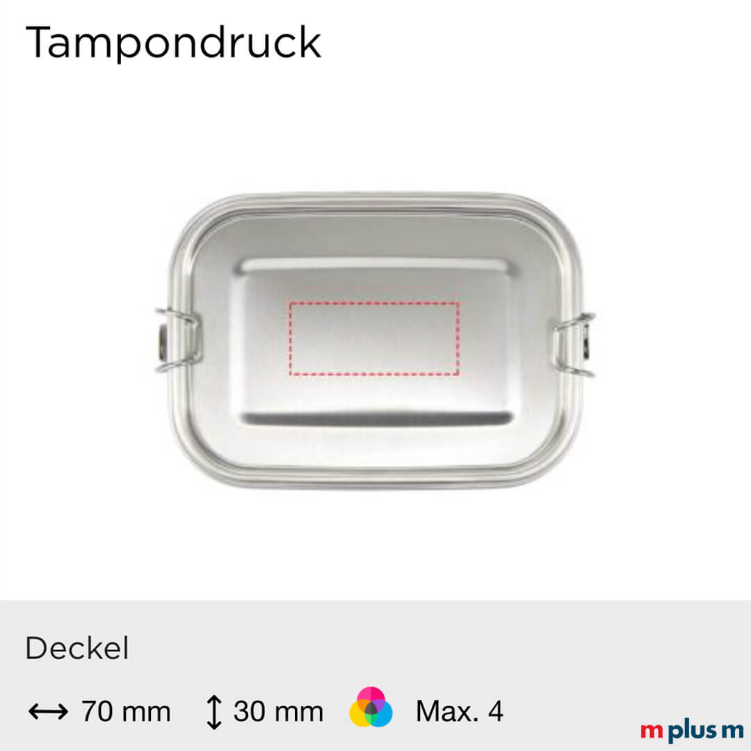 | Tampondruck | Deckel mitte | 70 x 30 mm | max. 4-farbig |