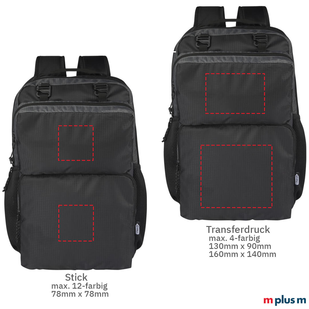 Der Laptop Rucksack 'Trailhead' bietet Platz für einen 15 Zoll Laptop und wird aus GRS zertifiziertem Recycling Material hergestellt. Mit Logo Druck ein nachhaltiger Werbeartikel