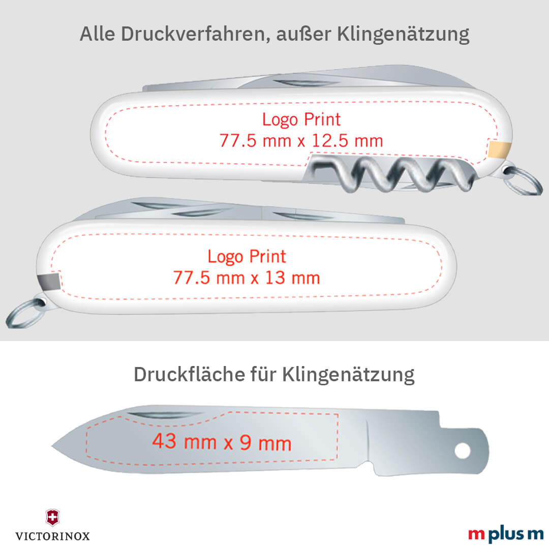 Ab einer Bestellmenge von 70 Stück können Sie das Victorinox Schweizer Taschenmesser mit Logo bedrucken lassen. Dadurch wird das Taschenmesser 'Waiter' zu Ihrem idealen Werbeartikel.