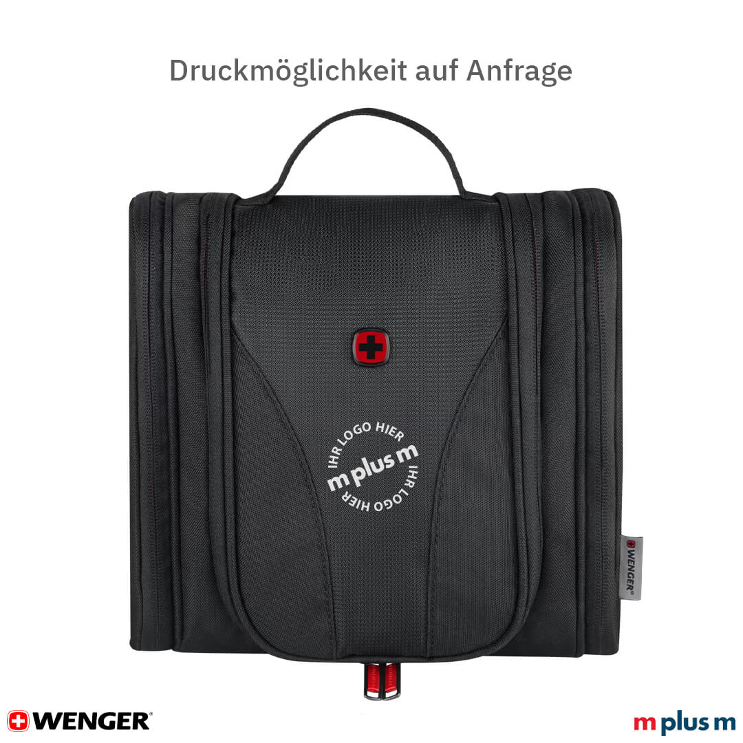 Die Wenger Kosmetiktasche überzeugt als praktischer Kulturbeutel mit Aufhängehaken. Im Alltag auf dem Weg zur Arbeit oder unterwegs auf Reisen. Mit Firmenlogo bedruckt ist er ein hochwertigen Werbeartikel und ein sehr schönes Mitarbeiter- oder Kundengeschenk.