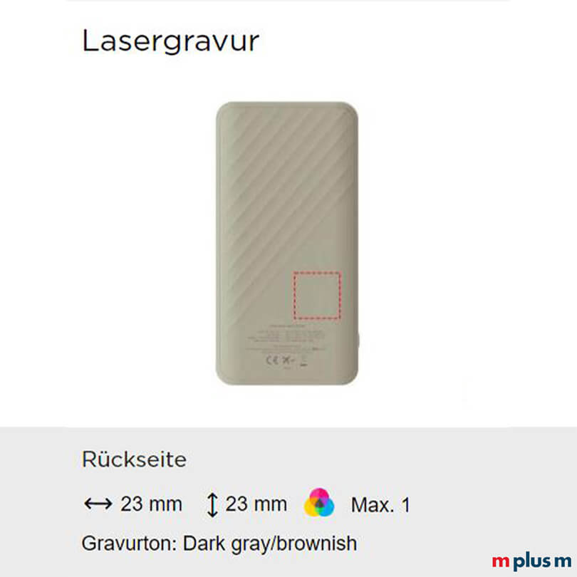 | Lasergravur | Rückseite | Einfarbig (Dunkelgrau/bräunlich) | 23 x 23 mm |